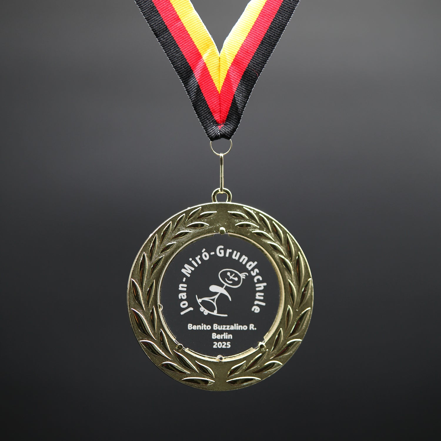 Die Lasergravur auf Glas-Medaillen ist eine elegante und präzise Methode, um persönliche Botschaften, Namen oder Informationen dauerhaft und hochwertig auf Ihren Auszeichnungen zu verewigen. Eine Lasergravur verleiht jeder Medaille eine persönliche Note und macht sie zu einem bleibenden Zeichen des Erfolgs.